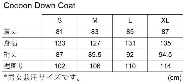 高めのスタンドカラーと全体的に丸みを帯びたコクーンシルエットが特徴的なダウンジャケット。