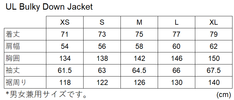 ダウンステッチを少なくすることにより、より羽毛の嵩高性をしっかりと感じられるBULKYさを確保しつつも、着用時に軽さを実感できるアイテム。